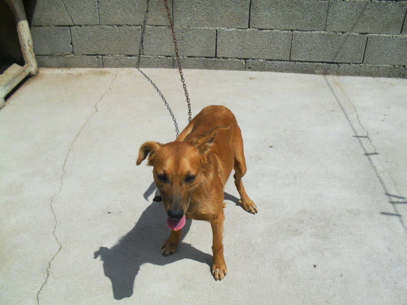 A nossa amiga Medrosa foi atirada para dentro do abrigo no inverno passado, acompanhada por mais 3 cadelas. Infelizmente todas grávidas. Uma delas foi mãe na mesma noite em que a atiraram por cima do muro e os seus bebés não sobreviveram. Da outras ninhadas, a maioria dos bebés foi dada, mas para traz ficaram 4 meninas, que ainda estão no canil.Esta nossa amiga, é super assustada, e quem a adoptar vai ter que ter muita paciência.